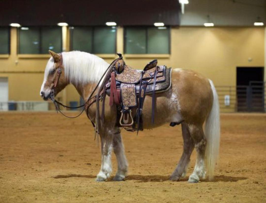 Carmel is a 14.1 hand 12 years old halflinger gelding he is just about as wide as he is tall and cute as a button, he has a super sweet in your pocket personality! Carmel has been used for a little bit of everything, he has been rode by all ages and levels of riders and is safe for absolutely anyone! Carmel has been hauled to town, he has been rode in parades, shown in 4-H and been hauled to lots of fun-shows. Carmel has also been hauled to lots of state parks and has been trail rode everywhere, he crosses the bridges, creeks and logs with ease! He has been used outside for most all aspects of ranch work, he has been used to gather and pen cattle, he has been used in the branding pen and has drug calves to the fire! Carmel has also spent some time in the arena, he lopes nice circles, has a nice soft stop and pivots nice and moves great off leg pressure. Carmel has also been started in English tack and has been started on small jumps as well! He stands tied, stands for the farrier, loads and hauls well! Easy to catch, stands for saddling and bridling. Carmel also comes with some stocking stuffers! Such as a bag of carmel popcorn, carmel chocolates, equine shampoo, a mini version of himself, a bag of treats, and a choice of purple or blue (halter & lead + brushes). If you’re looking for a lesson horse, trail partner, a show pony, or a perfect little pony for the kiddos Carmel will fit the bill, don’t miss out on this fancy one of a kind pony!