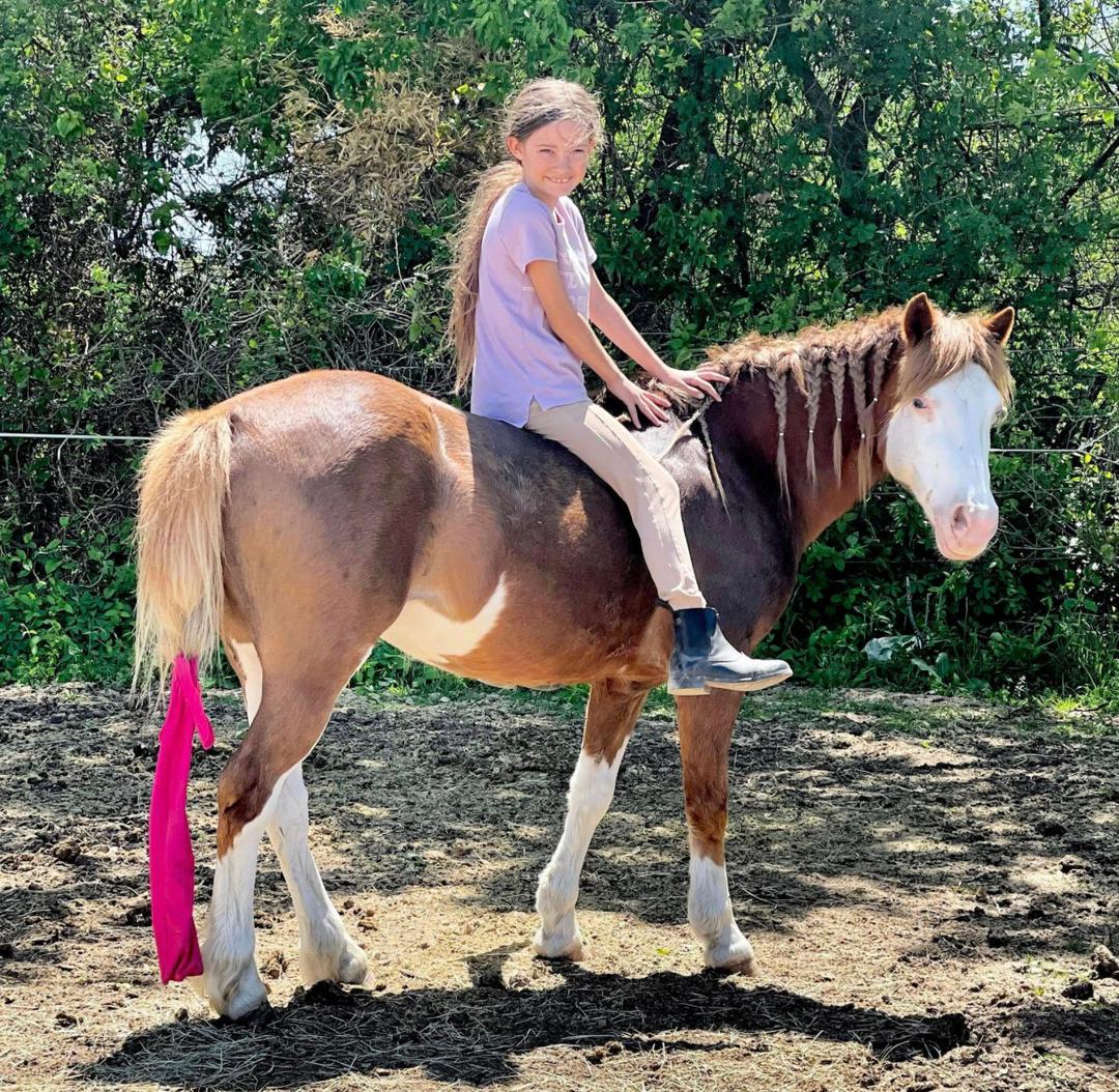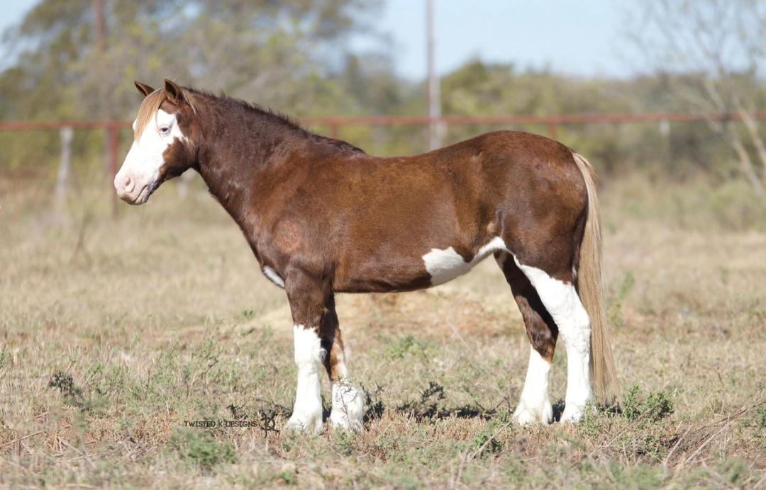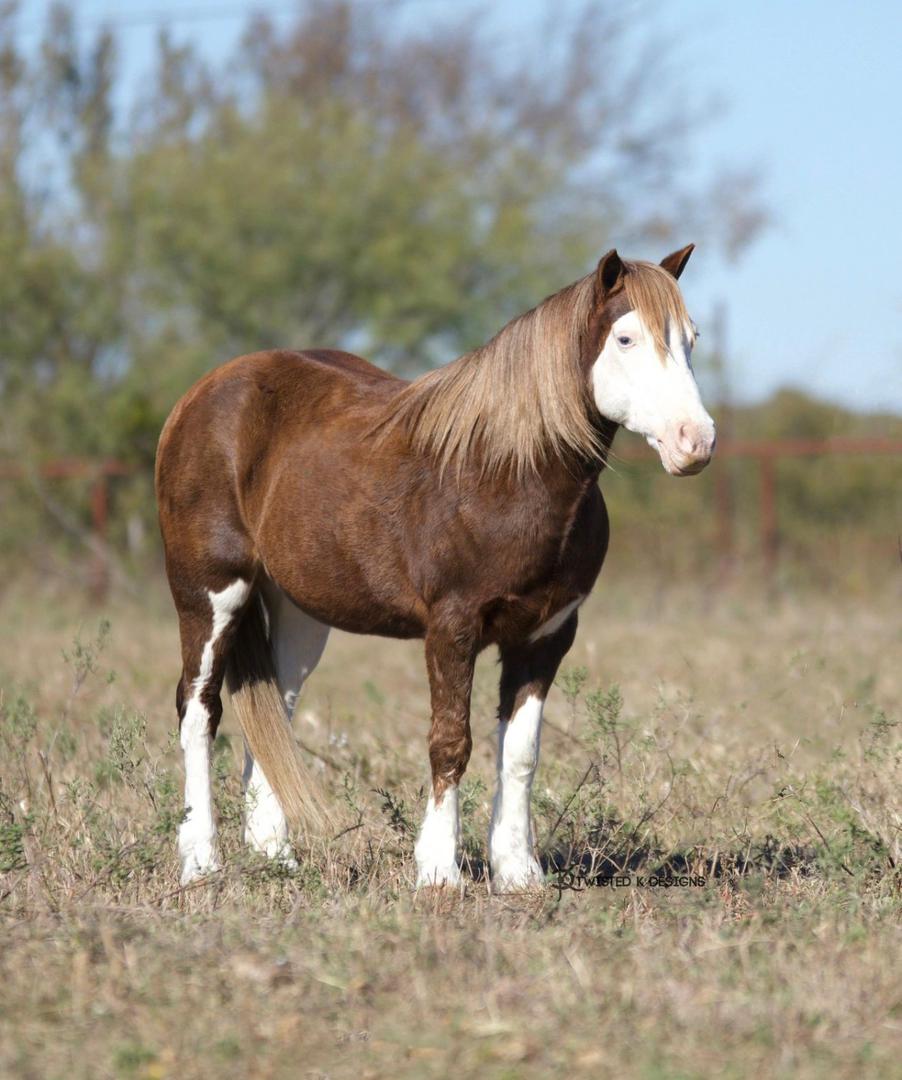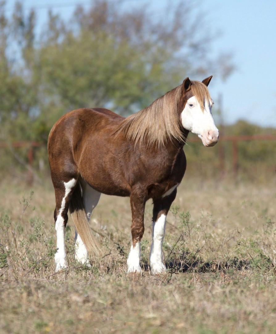 Unique. Versatile. Safe. This is the one the whole family can enjoy. KitKat is a 2011 Pony Mare that stands at 12 hands. She is thick made with great conformation. KitKat has truly been there done that and has a fun, sassy personality. She rides like a big horse and will go all day long with the best of them. Not to mention she has the look no other pony has. She fits the absolute beginners on up to the more advanced kids that are ready to go somewhere and have some fun! One of the brokest ponies we have ever had, will walk trot and lope circles. She has spent the days at the ranch packing the little ones around and knows what a hard days work is. She has been to the Stockyards and rode through the busy streets of exchange. She has been rode english and started over fences with a 9 year old girl. She shows great promise for a future in hunter/jumpers because of her willingness and flashy movement. She is an extremely quick learner and has a great attitude when presented with new challenges. She does the barrels, the poles, she’s roped them dummy and you can even step off her for the goat tying. She knows all the playday events too. She has been on overnight camping trips and will pack anything you want with ease. She has even been tacked up with the harness and ground driven, would be easy to teach to drive. We have put her through multiple different obstacle courses going over wooden bridges, pulling logs, going over logs, has also went through creeks, & through town she is traffic safe, not afraid of machinery, dogs, cattle, goats, chickens or other livestock. Lots of kids have rode her around at all the many events we have hauled her to, she will leadline and follow like a dream. Just point and kick, she will go anywhere you want. She can sit for months, easy to catch and will ride off every time with zero issues. KitKat is an easy keeper all year whether it be in a stall or pasture, leads, loads, ties, hauls & tacks up well. No buck, kick, bite or rear. She does not require any special maintenance, has great feet & wears front shoes. She had a sound vet check done and has a current coggins. Any level of rider will be able to ride her and appreciate how unique and kind hearted this girl truly is! We have been grateful to own such a amazing pony but it is time to let another family enjoy her as much as we have.